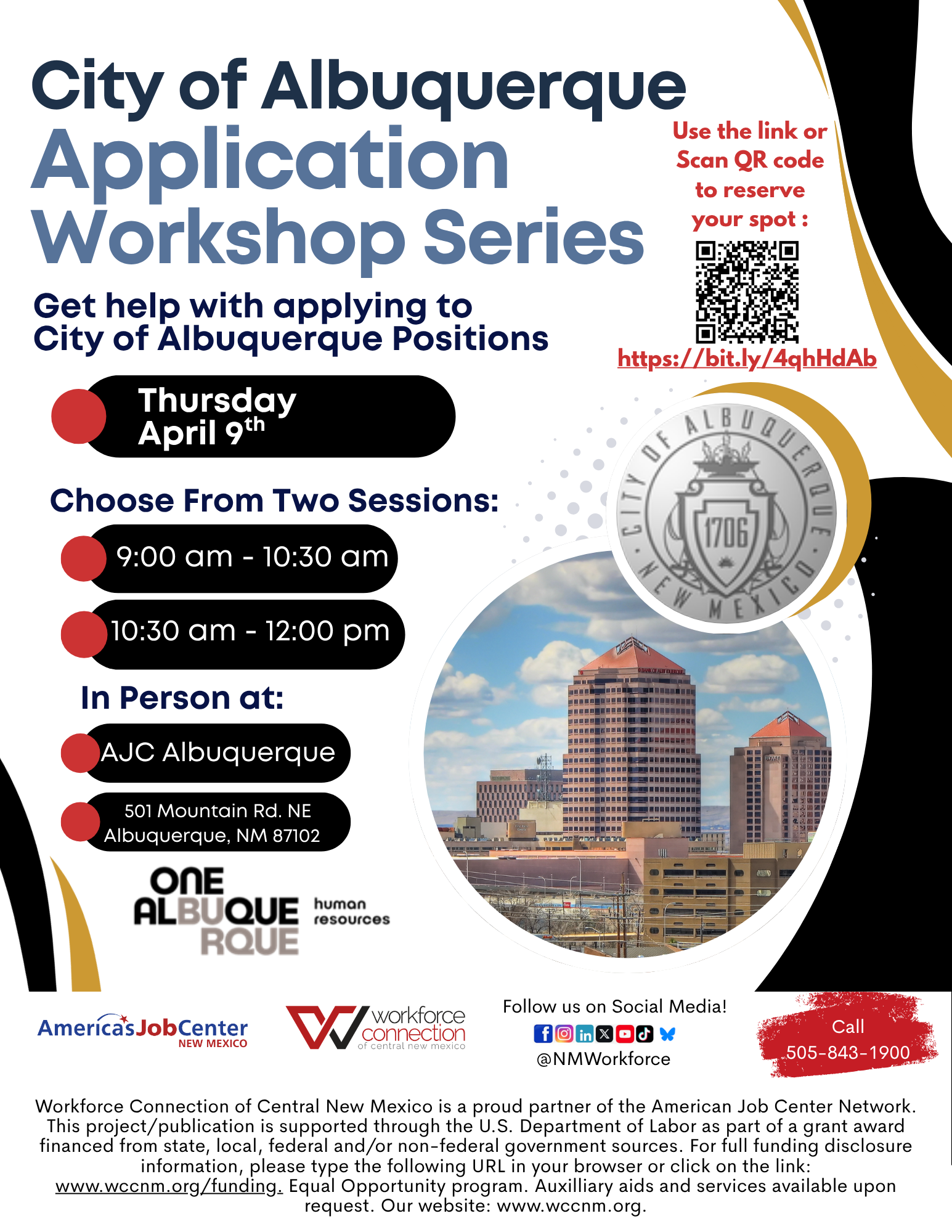 Home Events - Workforce Connection of Central New Mexico Career Workshops City of Albuquerque Application Workshop Series