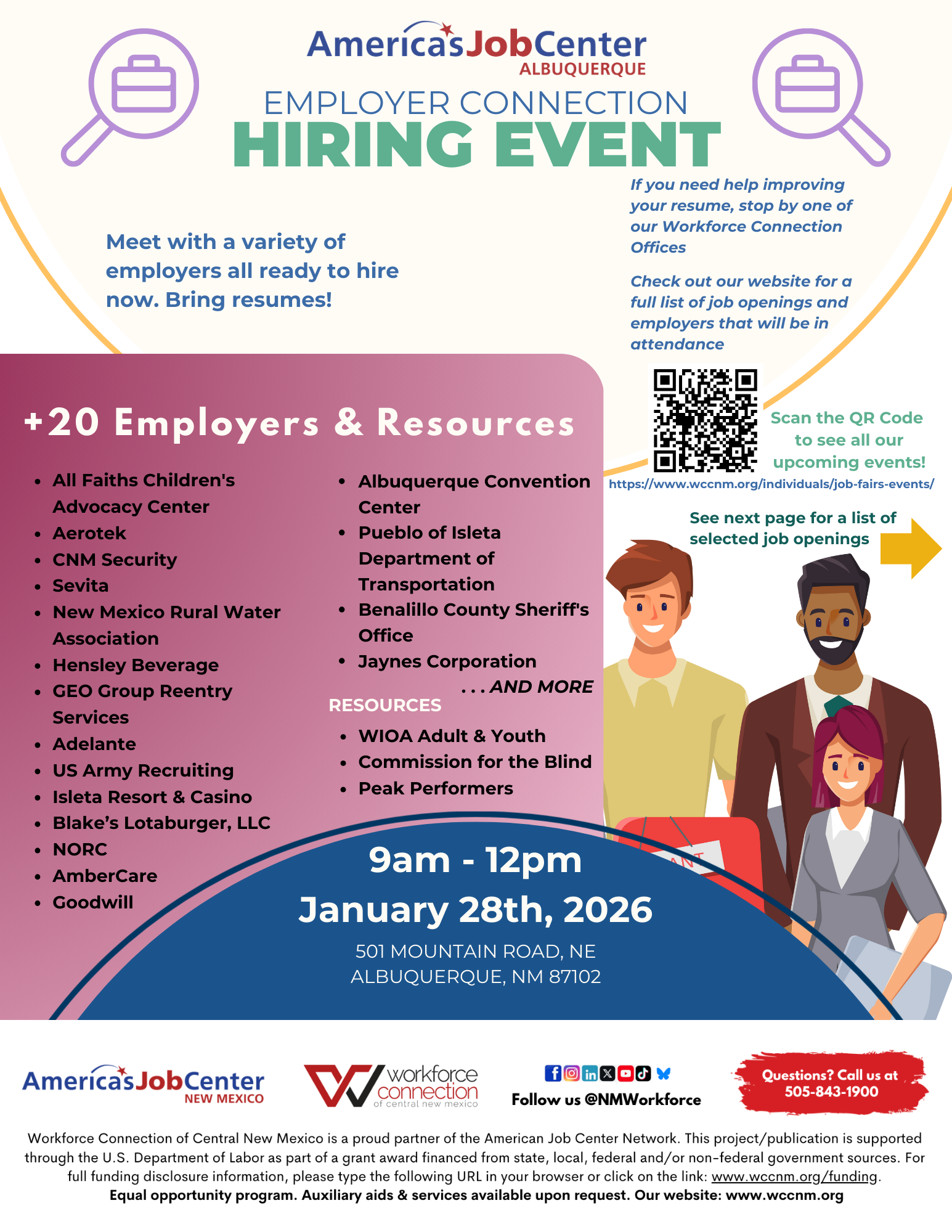 For more information, call our Welcome Desk at 505-843-1900, or explore our many career resources for job seekers here: https://www.wccnm.org/individuals/i-need-education-and-training/