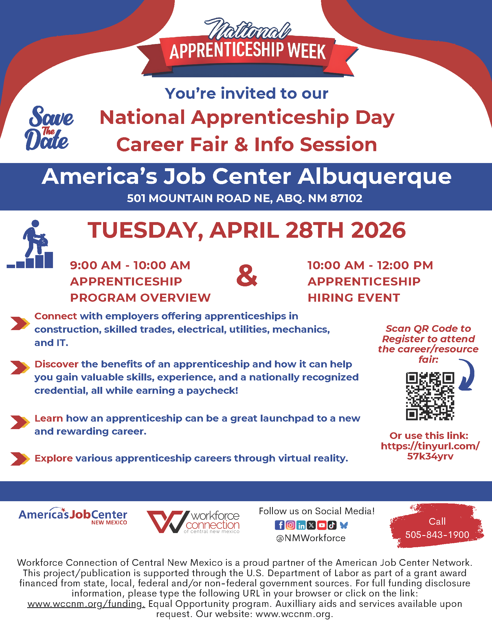 Home Events - Workforce Connection of Central New Mexico Hiring Events National Apprenticeship Day Career Fair & Info Session