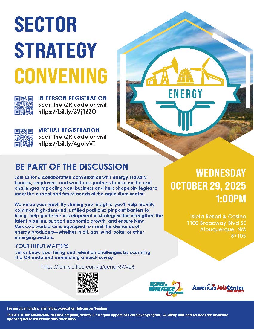 Home Events - Workforce Connection of Central New Mexico Public Input Session Sector Strategy Convening